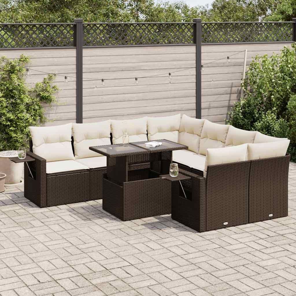 Salon de jardin avec coussins 9 pcs marron resine tressee