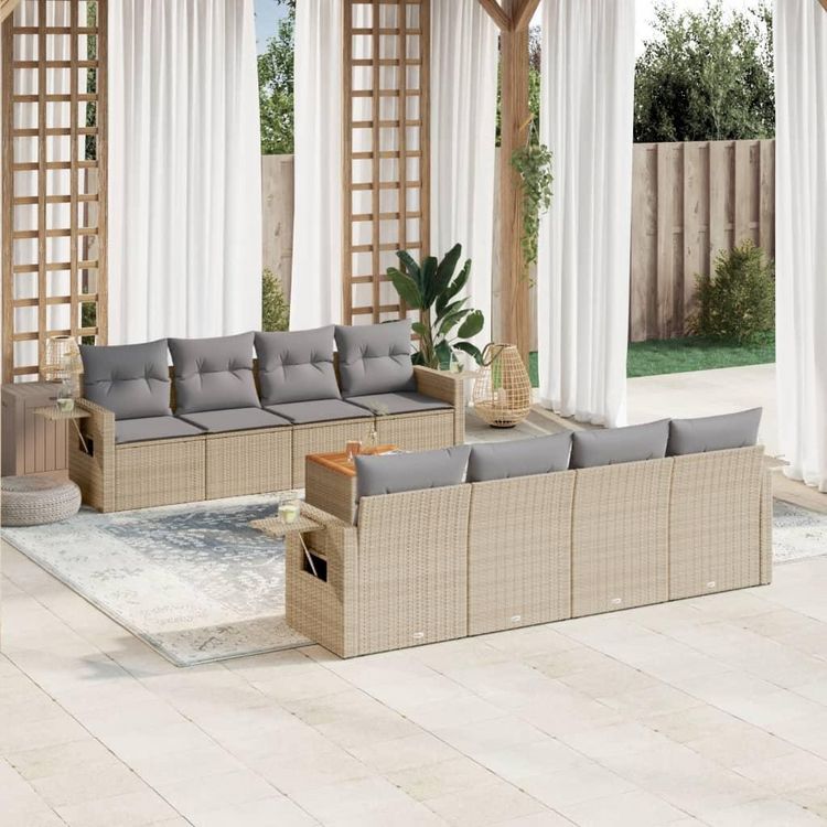 Salon de jardin avec coussins 9pcs melange beige resine tressee
