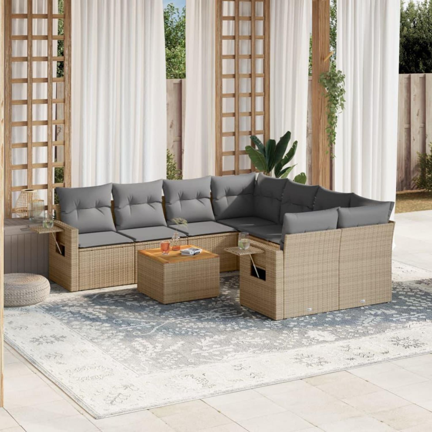 Salon de jardin avec coussins 9pcs melange beige resine tressee