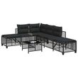 Salon de jardin d'angle 3 pcs avec coussins noir resine tressee