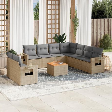 Salon de jardin et coussins 10 pcs melange beige resine tressee