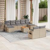 Salon de jardin et coussins 10 pcs melange beige resine tressee