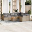 Salon de jardin et coussins 10 pcs melange beige resine tressee