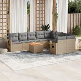 Salon de jardin et coussins 10 pcs melange beige resine tressee