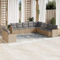 Salon de jardin et coussins 11 pcs melange beige resine tressee