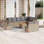 Salon de jardin et coussins 11 pcs melange beige resine tressee