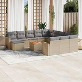 Salon de jardin et coussins 13 pcs melange beige resine tressee