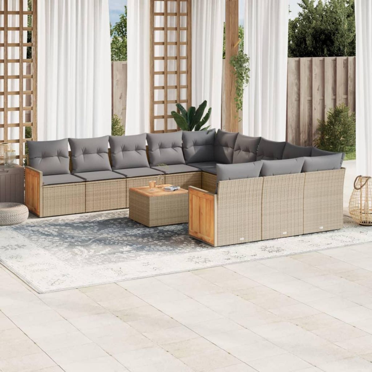 Salon de jardin et coussins 13 pcs melange beige resine tressee