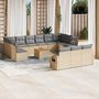 Salon de jardin et coussins 14 pcs melange beige resine tressee