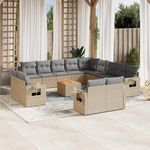 Salon de jardin et coussins 14 pcs melange beige resine tressee
