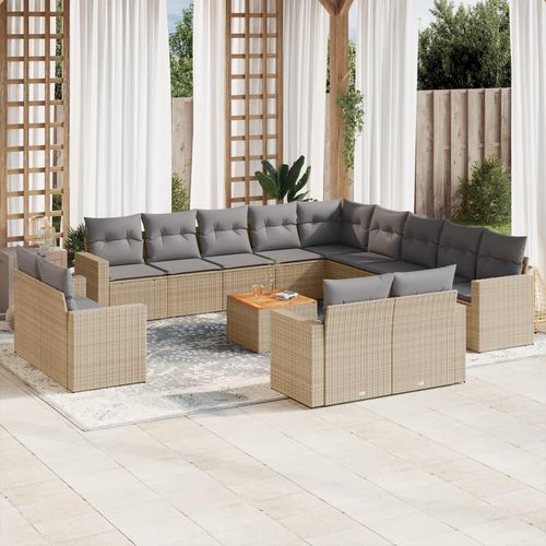 Salon de jardin et coussins 14 pcs melange beige resine tressee
