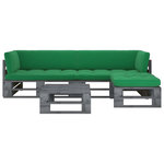 Salon de jardin palette 4pcs avec coussins Pin impregne de gris