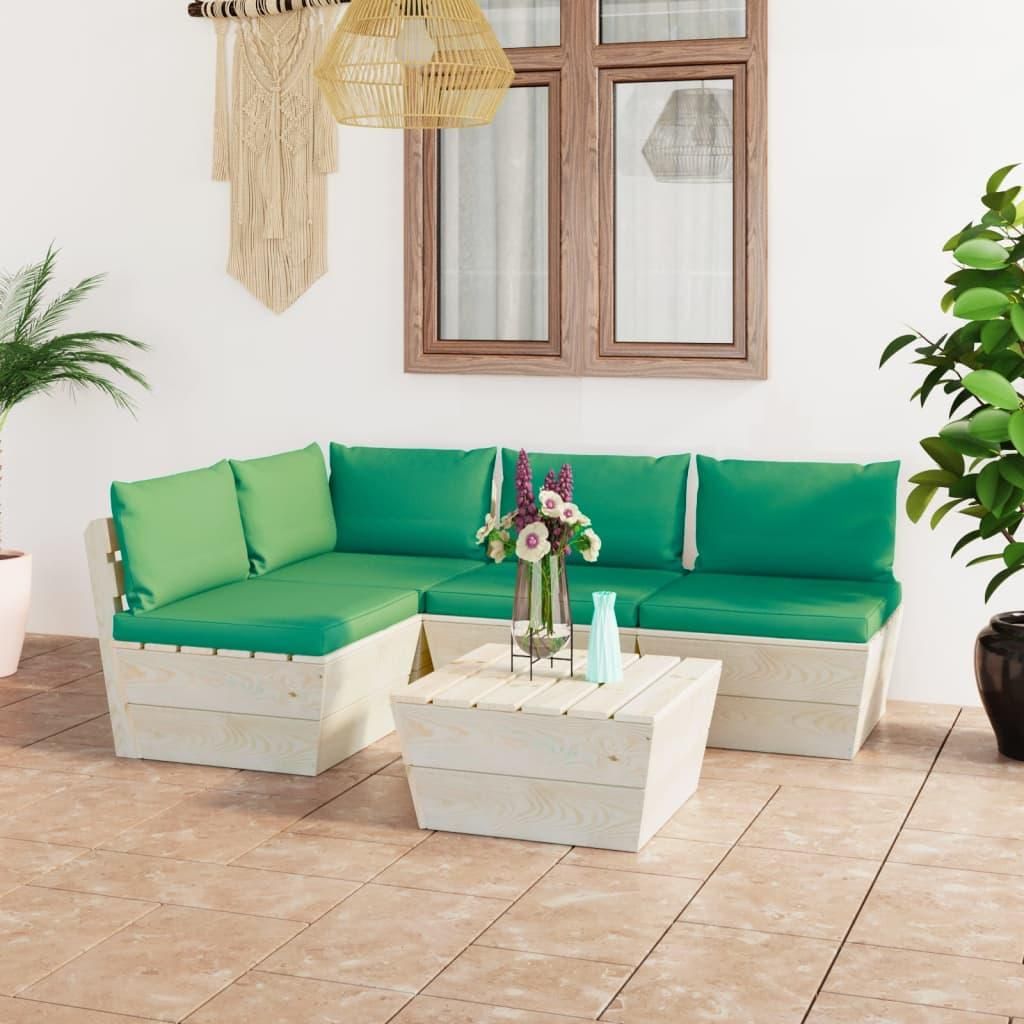 Salon de jardin palette 5 pcs avec coussins bois d'epicea