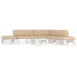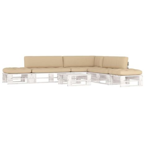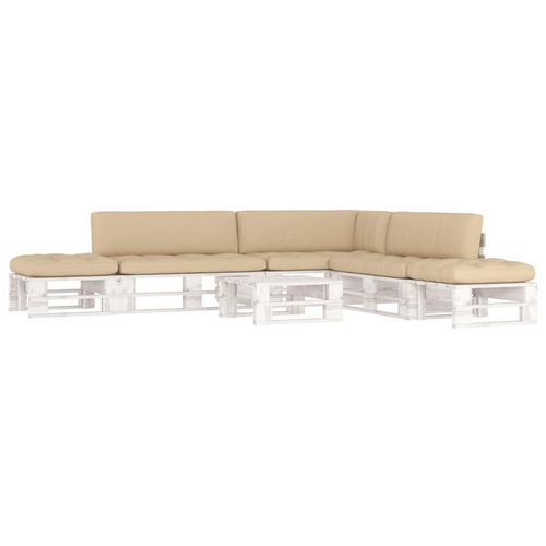 Salon de jardin palette 6 pcs et coussins Pin impregne de blanc