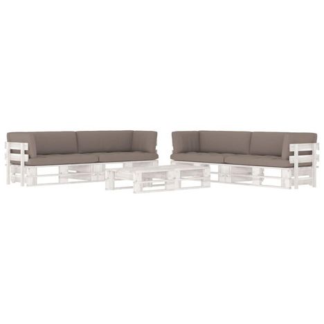 Salon de jardin palette 6 pcs et coussins Pin impregne de blanc