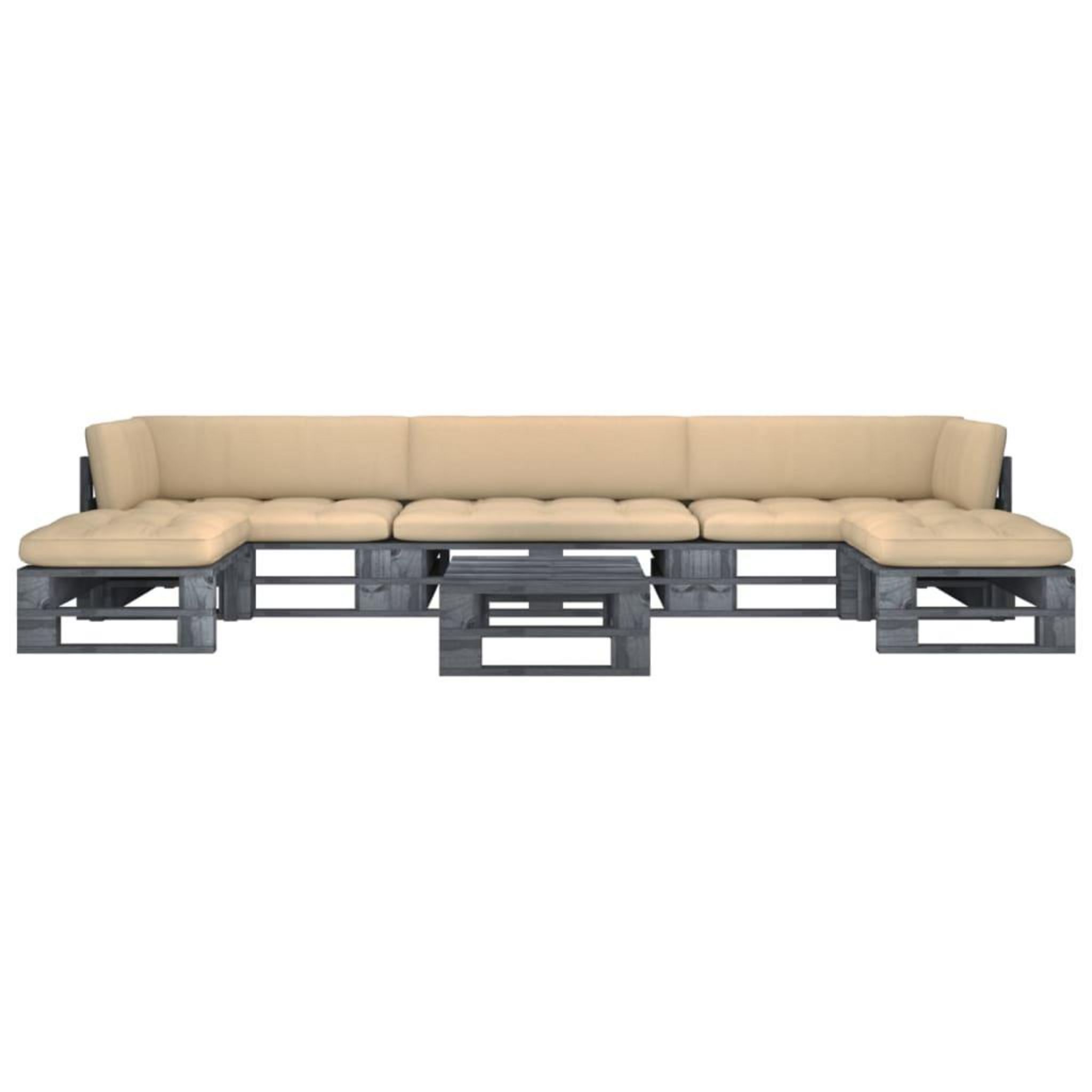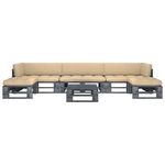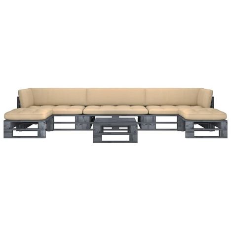 Salon de jardin palette 6pcs avec coussins Pin impregne de gris