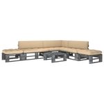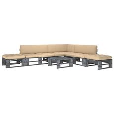 Salon de jardin palette 6pcs avec coussins Pin impregne de gris