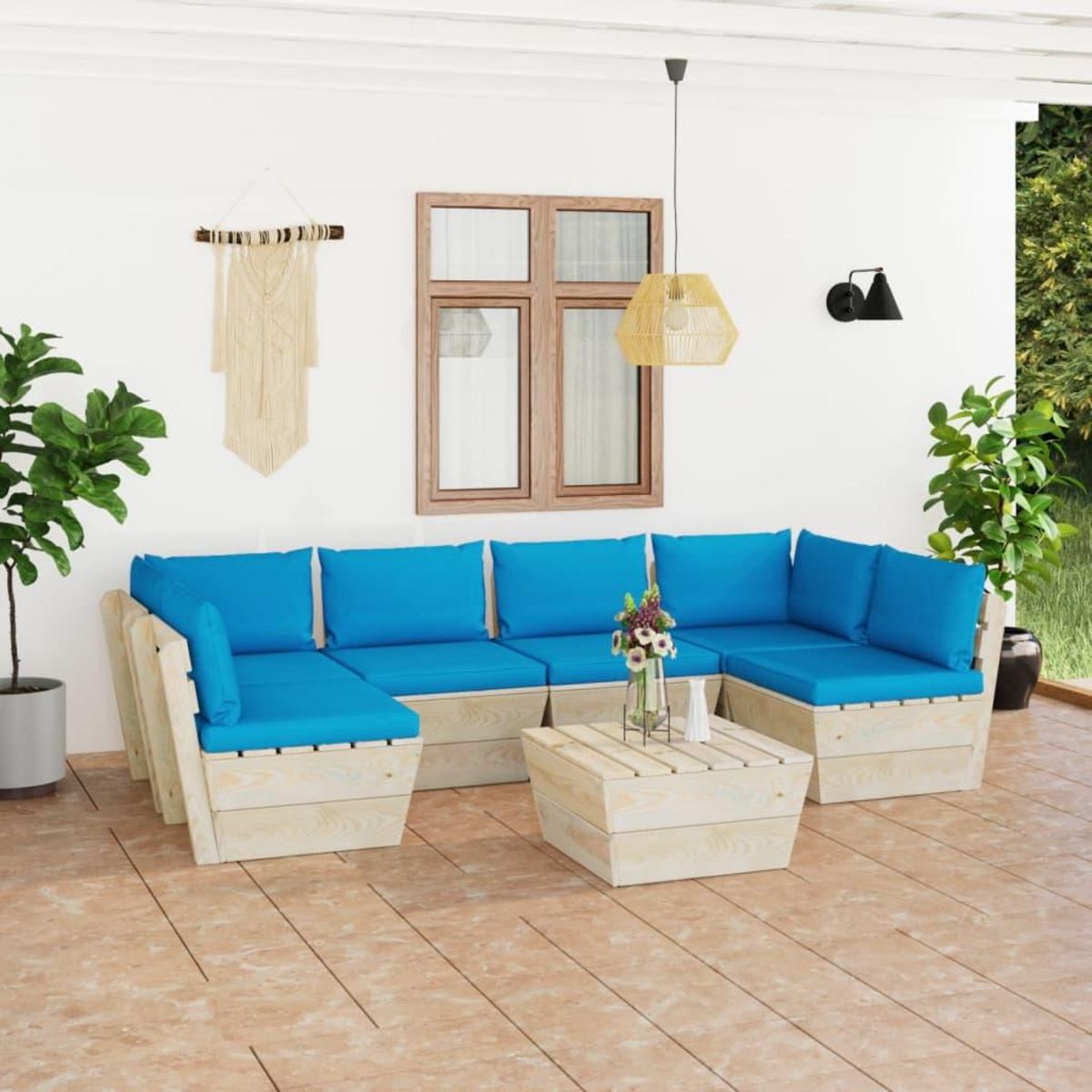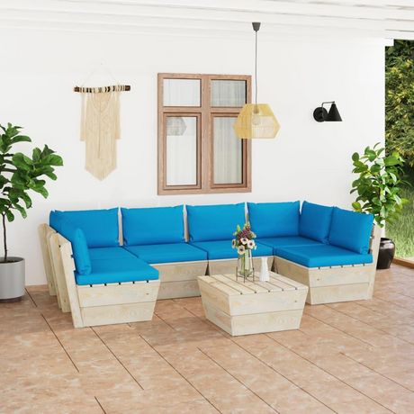 Salon de jardin palette 7 pcs avec coussins bois d'epicea