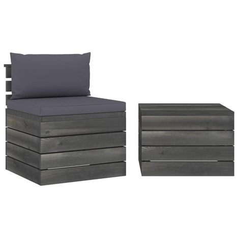 Salon palette de jardin 2 pcs avec coussins Bois de pin massif