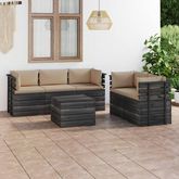 Salon palette de jardin 6 pcs avec coussins Bois de pin massif