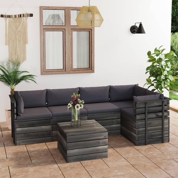 Salon palette de jardin 6 pcs avec coussins Bois de pin massif