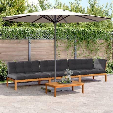 Salon palette de jardin avec coussins 4pcs bois d'acacia massif