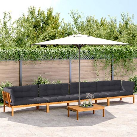 Salon palette de jardin avec coussins 5pcs bois d'acacia massif