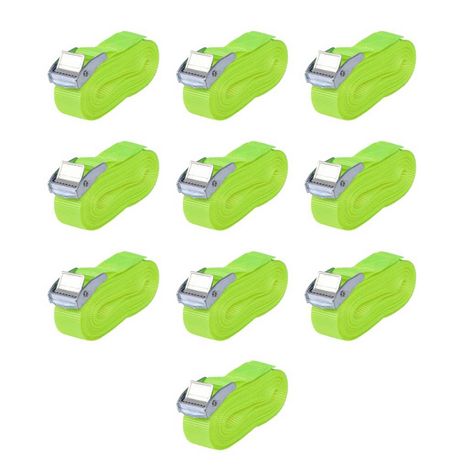 Ces sangles avec boucle a came peuvent etre utilisees generalement pour la fixation ou le serrage de la cargaison pour le transport ou le stockage. Les dispositifs d'arrimage solides et robustes sont fabriques en polyester de haute qualite et ont une capacite d'arrimage de 0,25 tonne chacun. Les san