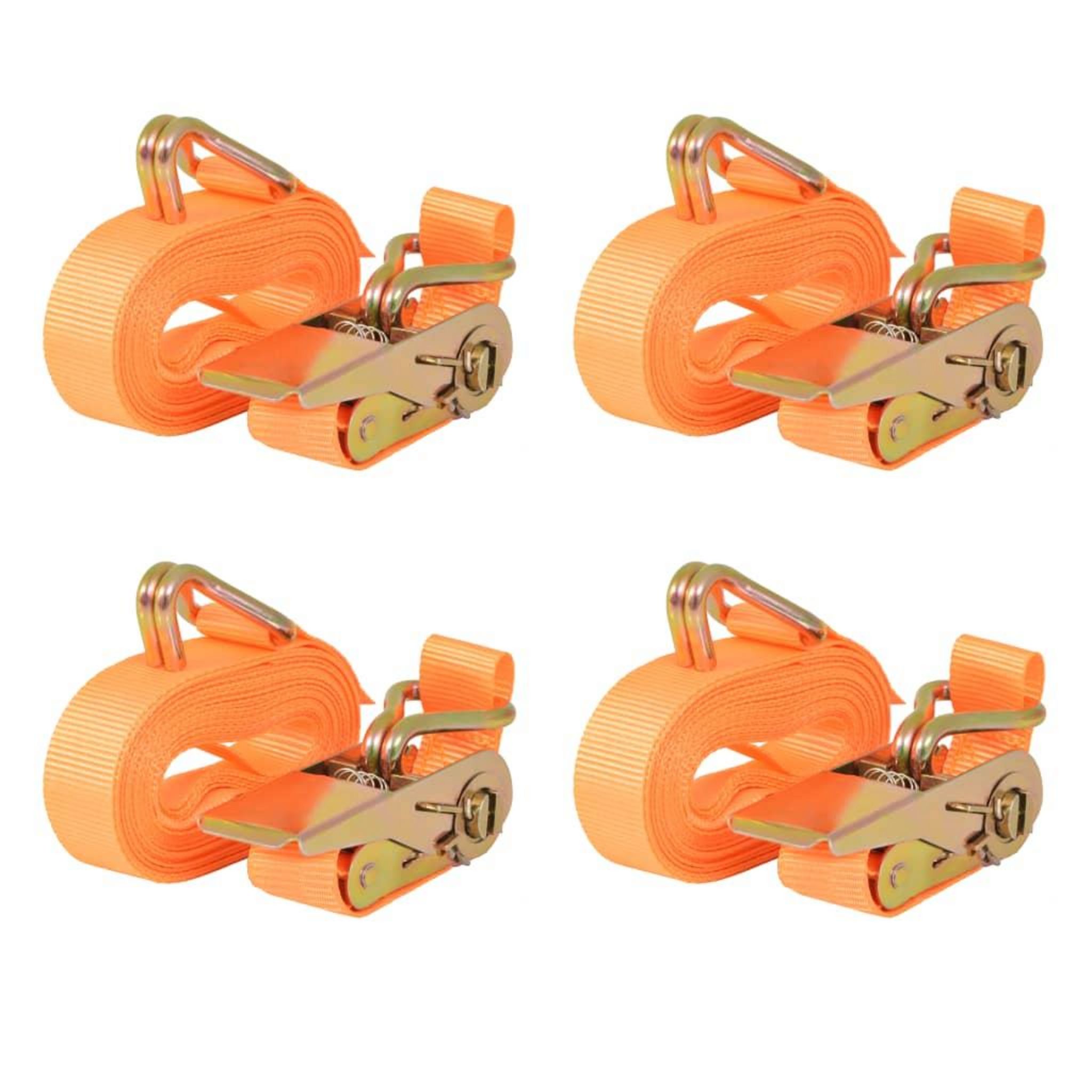 Sangle d'arrimage a cliquet 4 pcs 0,4 tonne 6 m x 25 mm Orange