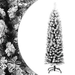 Ce sapin de Noël artificiel mince, avec de la neige blanche floquee, forme la piece maîtresse de vos decorations de Noël, creant une ambiance de Noël unique ! Ce magnifique sapin de Noël en PVC est tres realiste dans sa forme et son apparence. Les pieds en acier ajoutent a sa stabilite. L'arbre de N