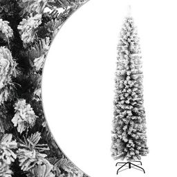 Notre sapin de Noël artificiel mince, avec de la neige blanche floquee, forme la piece maîtresse de vos decorations de Noël, creant une ambiance de Noël unique ! Ce magnifique sapin de Noël en PVC est tres realiste dans sa forme et son apparence. Les pieds en acier ajoutent a sa stabilite. L'arbre d