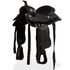 Cette selle western est livree avec un bridon assorti et un col de poitrine.