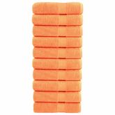 Ces serviettes de bain sont idéales pour un usage domestique et commercial. Matériau super doux et de qualité supérieure : ces serviettes sont fabriquées à 100 % en coton filé à l'anneau, qui est doux, durable et résistant à la décoloration. Elles sont certifiées OEKO-TEX STANDARD 100 et testées pour les substances nocives, ce qui les rend dignes de confiance et fiables à utiliser.Absorbant : le tissu en coton doux rend ces serviettes de bain plus absorbantes. Elles absorbent plus d'eau pendant le nettoyage.Boucle de suspension pratique : ces serviettes sont livrées avec une boucle de suspension attachée pour chacun, ce qui facilite leur rangement sur des crochets ou des porte-serviettes.Lavable en machine : ces serviettes de visage en coton sont parfaitement adaptées à la machine et peuvent être facilement lavées avec de l'eau chaude et un peu de savon.Utilisation polyvalente : ces serviettes répondent à différents besoins grâce à leur douceur et à leur durabilité. Ces serviettes sont polyvalentes et fiables pour les soins de beauté ou les tâches de nettoyage quotidiennes. Couleur : orangeMatériau : 100 % cotonDimensions : 100 x 150 cm (l x L)Qualité supérieure600 g/m²Certifié par STANDARD 100 par OEKO-TEXLavable en machineGamme : SOLUNDLa livraison contient :10 x serviette de bainCouleur : orangeMatériau : 100 % cotonDimensions : 100 x 150 cm (l x L)Qualité supérieure600 g/m²Certifié par STANDARD 100 par OEKO-TEXLavable en machineGamme : SOLUNDLa livraison contient :10 x serviette de bain