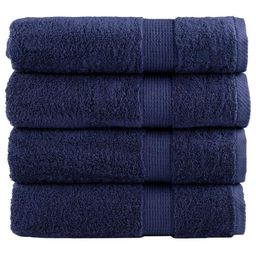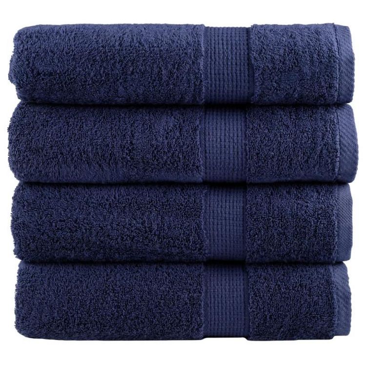 Ces serviettes de bain sont idéales pour un usage domestique et commercial. Matériau super doux et de qualité supérieure : ces serviettes sont fabriquées à 100 % en coton filé à l'anneau, qui est doux, durable et résistant à la décoloration. Elles sont certifiées OEKO-TEX STANDARD 100 et testées pour les substances nocives, ce qui les rend dignes de confiance et fiables à utiliser.Absorbant : le tissu en coton doux rend ces serviettes de bain plus absorbantes. Elles absorbent plus d'eau pendant le nettoyage.Boucle de suspension pratique : ces serviettes sont livrées avec une boucle de suspension attachée pour chacun, ce qui facilite leur rangement sur des crochets ou des porte-serviettes.Lavable en machine : ces serviettes de visage en coton sont parfaitement adaptées à la machine et peuvent être facilement lavées avec de l'eau chaude et un peu de savon.Utilisation polyvalente : ces serviettes répondent à différents besoins grâce à leur douceur et à leur durabilité. Ces serviettes sont polyvalentes et fiables pour les soins de beauté ou les tâches de nettoyage quotidiennes. Couleur : bleu marineMatériau : 100 % cotonDimensions : 100 x 150 cm (l x L)Qualité supérieure600 g/m²Certifié par STANDARD 100 par OEKO-TEXLavable en machineGamme : SOLUNDLa livraison contient :4 x serviette de bainCouleur : bleu marineMatériau : 100 % cotonDimensions : 100 x 150 cm (l x L)Qualité supérieure600 g/m²Certifié par STANDARD 100 par OEKO-TEXLavable en machineGamme : SOLUNDLa livraison contient :4 x serviette de bain