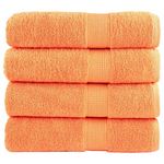 Ces serviettes de bain sont idéales pour un usage domestique et commercial. Matériau super doux et de qualité supérieure : ces serviettes sont fabriquées à 100 % en coton filé à l'anneau, qui est doux, durable et résistant à la décoloration. Elles sont certifiées OEKO-TEX STANDARD 100 et testées pour les substances nocives, ce qui les rend dignes de confiance et fiables à utiliser.Absorbant : le tissu en coton doux rend ces serviettes de bain plus absorbantes. Elles absorbent plus d'eau pendant le nettoyage.Boucle de suspension pratique : ces serviettes sont livrées avec une boucle de suspension attachée pour chacun, ce qui facilite leur rangement sur des crochets ou des porte-serviettes.Lavable en machine : ces serviettes de visage en coton sont parfaitement adaptées à la machine et peuvent être facilement lavées avec de l'eau chaude et un peu de savon.Utilisation polyvalente : ces serviettes répondent à différents besoins grâce à leur douceur et à leur durabilité. Ces serviettes sont polyvalentes et fiables pour les soins de beauté ou les tâches de nettoyage quotidiennes. Couleur : orangeMatériau : 100 % cotonDimensions : 100 x 150 cm (l x L)Qualité supérieure600 g/m²Certifié par STANDARD 100 par OEKO-TEXLavable en machineGamme : SOLUNDLa livraison contient :4 x serviette de bainCouleur : orangeMatériau : 100 % cotonDimensions : 100 x 150 cm (l x L)Qualité supérieure600 g/m²Certifié par STANDARD 100 par OEKO-TEXLavable en machineGamme : SOLUNDLa livraison contient :4 x serviette de bain