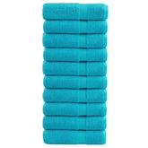 Ces serviettes de douche sont idéales pour un usage domestique et commercial. Matériau super doux et de qualité supérieure : ces serviettes sont fabriquées à 100 % en coton filé à l'anneau, qui est doux, durable et résistant à la décoloration. Elles sont certifiées OEKO-TEX STANDARD 100 et testées pour les substances nocives, ce qui les rend dignes de confiance et fiables à utiliser.Absorbant : le tissu en coton doux rend ces serviettes de bain plus absorbantes. Elles absorbent plus d'eau pendant le nettoyage.Boucle de suspension pratique : ces serviettes sont livrées avec une boucle de suspension attachée pour chacun, ce qui facilite leur rangement sur des crochets ou des porte-serviettes.Lavable en machine : ces serviettes de visage en coton sont parfaitement adaptées à la machine et peuvent être facilement lavées avec de l'eau chaude et un peu de savon.Utilisation polyvalente : ces serviettes répondent à différents besoins grâce à leur douceur et à leur durabilité. Ces serviettes sont polyvalentes et fiables pour les soins de beauté ou les tâches de nettoyage quotidiennes. Couleur : turquoiseMatériau : 100 % cotonTaille : 70 x 140 cm (I x L)Qualité supérieure600 g/m²Certifié par STANDARD 100 par OEKO-TEXLavable en machineGamme : SOLUNDLa livraison contient :10 x serviette de doucheCouleur : turquoiseMatériau : 100 % cotonTaille : 70 x 140 cm (I x L)Qualité supérieure600 g/m²Certifié par STANDARD 100 par OEKO-TEXLavable en machineGamme : SOLUNDLa livraison contient :10 x serviette de douche
