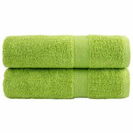 Ces serviettes de douche sont idéales pour un usage domestique et commercial. Matériau super doux et de qualité supérieure : ces serviettes sont fabriquées à 100 % en coton filé à l'anneau, qui est doux, durable et résistant à la décoloration. Elles sont certifiées OEKO-TEX STANDARD 100 et testées pour les substances nocives, ce qui les rend dignes de confiance et fiables à utiliser.Absorbant : le tissu en coton doux rend ces serviettes de bain plus absorbantes. Elles absorbent plus d'eau pendant le nettoyage.Boucle de suspension pratique : ces serviettes sont livrées avec une boucle de suspension attachée pour chacun, ce qui facilite leur rangement sur des crochets ou des porte-serviettes.Lavable en machine : ces serviettes de visage en coton sont parfaitement adaptées à la machine et peuvent être facilement lavées avec de l'eau chaude et un peu de savon.Utilisation polyvalente : ces serviettes répondent à différents besoins grâce à leur douceur et à leur durabilité. Ces serviettes sont polyvalentes et fiables pour les soins de beauté ou les tâches de nettoyage quotidiennes. Couleur : vert pommeMatériau : 100 % cotonTaille : 70 x 140 cm (I x L)Qualité supérieure600 g/m²Certifié par STANDARD 100 par OEKO-TEXLavable en machineGamme : SOLUNDLa livraison contient :2 x serviette de doucheCouleur : vert pommeMatériau : 100 % cotonTaille : 70 x 140 cm (I x L)Qualité supérieure600 g/m²Certifié par STANDARD 100 par OEKO-TEXLavable en machineGamme : SOLUNDLa livraison contient :2 x serviette de douche