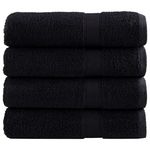 Ces serviettes de douche sont idéales pour un usage domestique et commercial. Matériau super doux et de qualité supérieure : ces serviettes sont fabriquées à 100 % en coton filé à l'anneau, qui est doux, durable et résistant à la décoloration. Elles sont certifiées OEKO-TEX STANDARD 100 et testées pour les substances nocives, ce qui les rend dignes de confiance et fiables à utiliser.Absorbant : le tissu en coton doux rend ces serviettes de bain plus absorbantes. Elles absorbent plus d'eau pendant le nettoyage.Boucle de suspension pratique : ces serviettes sont livrées avec une boucle de suspension attachée pour chacun, ce qui facilite leur rangement sur des crochets ou des porte-serviettes.Lavable en machine : ces serviettes de visage en coton sont parfaitement adaptées à la machine et peuvent être facilement lavées avec de l'eau chaude et un peu de savon.Utilisation polyvalente : ces serviettes répondent à différents besoins grâce à leur douceur et à leur durabilité. Ces serviettes sont polyvalentes et fiables pour les soins de beauté ou les tâches de nettoyage quotidiennes. Couleur : noirMatériau : 100 % cotonTaille : 70 x 140 cm (I x L)Qualité supérieure600 g/m²Certifié par STANDARD 100 par OEKO-TEXLavable en machineGamme : SOLUNDLa livraison contient :4 x serviette de doucheCouleur : noirMatériau : 100 % cotonTaille : 70 x 140 cm (I x L)Qualité supérieure600 g/m²Certifié par STANDARD 100 par OEKO-TEXLavable en machineGamme : SOLUNDLa livraison contient :4 x serviette de douche