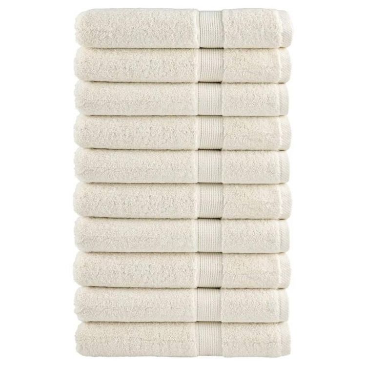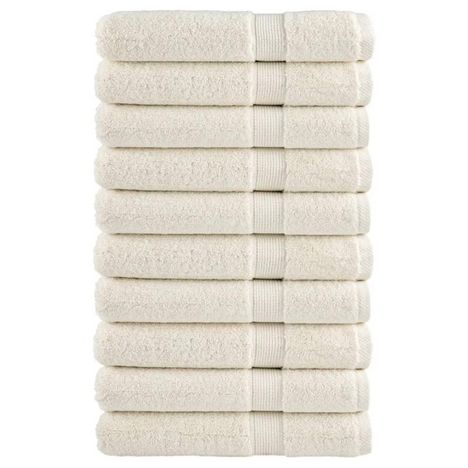 Ces serviettes sont idéales pour un usage domestique et commercial. Matériau super doux et de qualité supérieure : ces serviettes sont fabriquées à 100 % en coton filé à l'anneau, qui est doux, durable et résistant à la décoloration. Elles sont certifiées OEKO-TEX STANDARD 100 et testées pour les substances nocives, ce qui les rend dignes de confiance et fiables à utiliser. Absorbant : le tissu en coton doux rend ces serviettes de bain plus absorbantes et permet d'absorber plus d'eau lors du nettoyage. En outre, la taille de 100x200 cm offre une plus grande couverture et un plus grand confort, ce qui en fait des serviettes de plage idéales. Boucle de suspension pratique : ces serviettes sont livrées avec une boucle de suspension attachée pour chacun, ce qui facilite leur rangement sur des crochets ou des porte-serviettes. Lavable en machine : ces serviettes de visage en coton sont parfaitement adaptées à la machine et peuvent être facilement lavées avec de l'eau chaude et un peu de savon. Utilisation polyvalente : ces serviettes répondent à différents besoins grâce à leur douceur et à leur durabilité. Ces serviettes sont polyvalentes et fiables pour les soins de beauté ou les tâches de nettoyage quotidiennes. Couleur : crèmeMatériau : 100 % cotonDimensions : 100 x 200 cm (l x L)Qualité supérieure600 g/m²Certifié par STANDARD 100 par OEKO-TEXLavable en machineGamme : SOLUNDLa livraison contient :10 x servietteCouleur : crèmeMatériau : 100 % cotonDimensions : 100 x 200 cm (l x L)Qualité supérieure600 g/m²Certifié par STANDARD 100 par OEKO-TEXLavable en machineGamme : SOLUNDLa livraison contient :10 x serviette