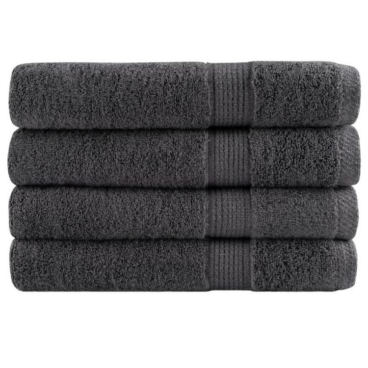 Ces serviettes sont idéales pour un usage domestique et commercial. Matériau super doux et de qualité supérieure : ces serviettes sont fabriquées à 100 % en coton filé à l'anneau, qui est doux, durable et résistant à la décoloration. Elles sont certifiées OEKO-TEX STANDARD 100 et testées pour les substances nocives, ce qui les rend dignes de confiance et fiables à utiliser. Absorbant : le tissu en coton doux rend ces serviettes de bain plus absorbantes et permet d'absorber plus d'eau lors du nettoyage. En outre, la taille de 100x200 cm offre une plus grande couverture et un plus grand confort, ce qui en fait des serviettes de plage idéales. Boucle de suspension pratique : ces serviettes sont livrées avec une boucle de suspension attachée pour chacun, ce qui facilite leur rangement sur des crochets ou des porte-serviettes. Lavable en machine : ces serviettes de visage en coton sont parfaitement adaptées à la machine et peuvent être facilement lavées avec de l'eau chaude et un peu de savon. Utilisation polyvalente : ces serviettes répondent à différents besoins grâce à leur douceur et à leur durabilité. Ces serviettes sont polyvalentes et fiables pour les soins de beauté ou les tâches de nettoyage quotidiennes. Couleur : anthraciteMatériau : 100 % cotonDimensions : 100 x 200 cm (l x L)Qualité supérieure600 g/m²Certifié par STANDARD 100 par OEKO-TEXLavable en machineGamme : SOLUNDLa livraison contient :4 x servietteCouleur : anthraciteMatériau : 100 % cotonDimensions : 100 x 200 cm (l x L)Qualité supérieure600 g/m²Certifié par STANDARD 100 par OEKO-TEXLavable en machineGamme : SOLUNDLa livraison contient :4 x serviette