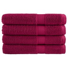 Ces serviettes sont idéales pour un usage domestique et commercial. Matériau super doux et de qualité supérieure : ces serviettes sont fabriquées à 100 % en coton filé à l'anneau, qui est doux, durable et résistant à la décoloration. Elles sont certifiées OEKO-TEX STANDARD 100 et testées pour les substances nocives, ce qui les rend dignes de confiance et fiables à utiliser. Absorbant : le tissu en coton doux rend ces serviettes de bain plus absorbantes et permet d'absorber plus d'eau lors du nettoyage. En outre, la taille de 100x200 cm offre une plus grande couverture et un plus grand confort, ce qui en fait des serviettes de plage idéales. Boucle de suspension pratique : ces serviettes sont livrées avec une boucle de suspension attachée pour chacun, ce qui facilite leur rangement sur des crochets ou des porte-serviettes. Lavable en machine : ces serviettes de visage en coton sont parfaitement adaptées à la machine et peuvent être facilement lavées avec de l'eau chaude et un peu de savon. Utilisation polyvalente : ces serviettes répondent à différents besoins grâce à leur douceur et à leur durabilité. Ces serviettes sont polyvalentes et fiables pour les soins de beauté ou les tâches de nettoyage quotidiennes. Couleur : bordeauxMatériau : 100 % cotonDimensions : 100 x 200 cm (l x L)Qualité supérieure600 g/m²Certifié par STANDARD 100 par OEKO-TEXLavable en machineGamme : SOLUNDLa livraison contient :4 x servietteCouleur : bordeauxMatériau : 100 % cotonDimensions : 100 x 200 cm (l x L)Qualité supérieure600 g/m²Certifié par STANDARD 100 par OEKO-TEXLavable en machineGamme : SOLUNDLa livraison contient :4 x serviette