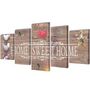 Ce set de 5 toiles imprimees sera ideal pour decorer votre salon, salle a manger, chambre a coucher, etc. En toile de haute qualite, ce set de toiles imprimees est resistant a l'eau et facile a nettoyer. Grace a l'impression coloree de Home Sweet Home , ce set de toiles murales imprimees a un carac