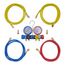 Les manometres avec echelles colorees sont rapides, clairs et faciles a lire. Les manometres sont enfermes dans un bumper de protection pour eviter tout dommage. Vous pouvez utiliser le crochet en acier integre pour suspendre rapidement et facilement le manifold.