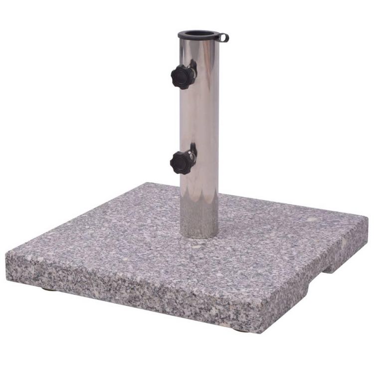 Cette base de parasol solide, d'un poids total de 20 kg, sert parfaitement de base ferme et robuste pour tenir votre parasol en place. Sa construction en granite durable assure la meilleure stabilite pendant des annees d'utilisation. Les 2 adaptateurs installes permettraient d'accueillir un mat de