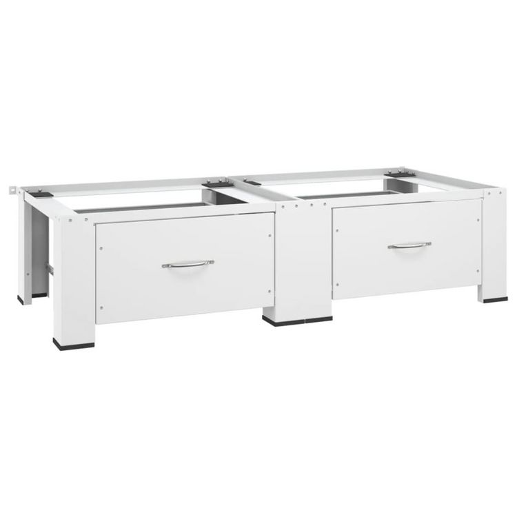 Socle double pour lave-linge et seche-linge avec tiroirs Blanc