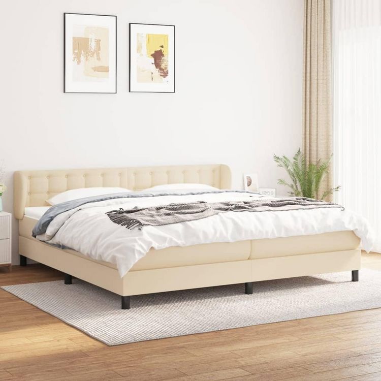Sommier a lattes de lit avec matelas Creme 200x200 cm Tissu