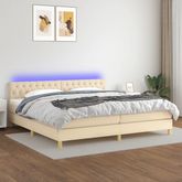 Sommier a lattes de lit et matelas et LED Creme 200x200cm Tissu