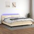 Sommier a lattes de lit et matelas et LED Creme 200x200cm Tissu