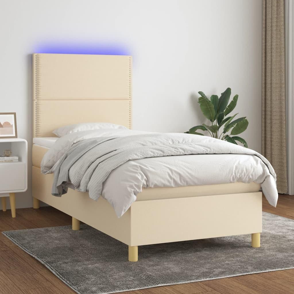 Sommier a lattes de lit et matelas et LED Creme 80x200cm Tissu