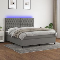 Sommier a lattes de lit et matelas et LED Gris fonce 180x200 cm